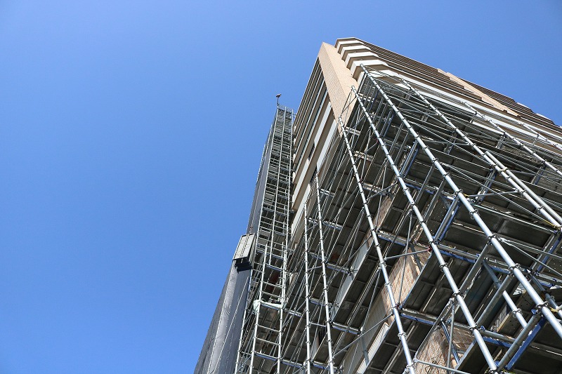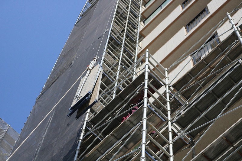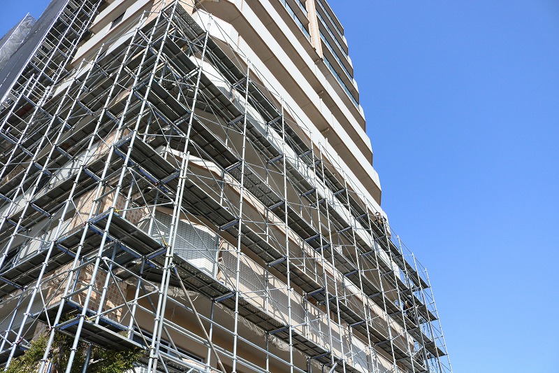 埼玉県にあるマンションの大規模修繕工事における、足場仮設工事を行いました。